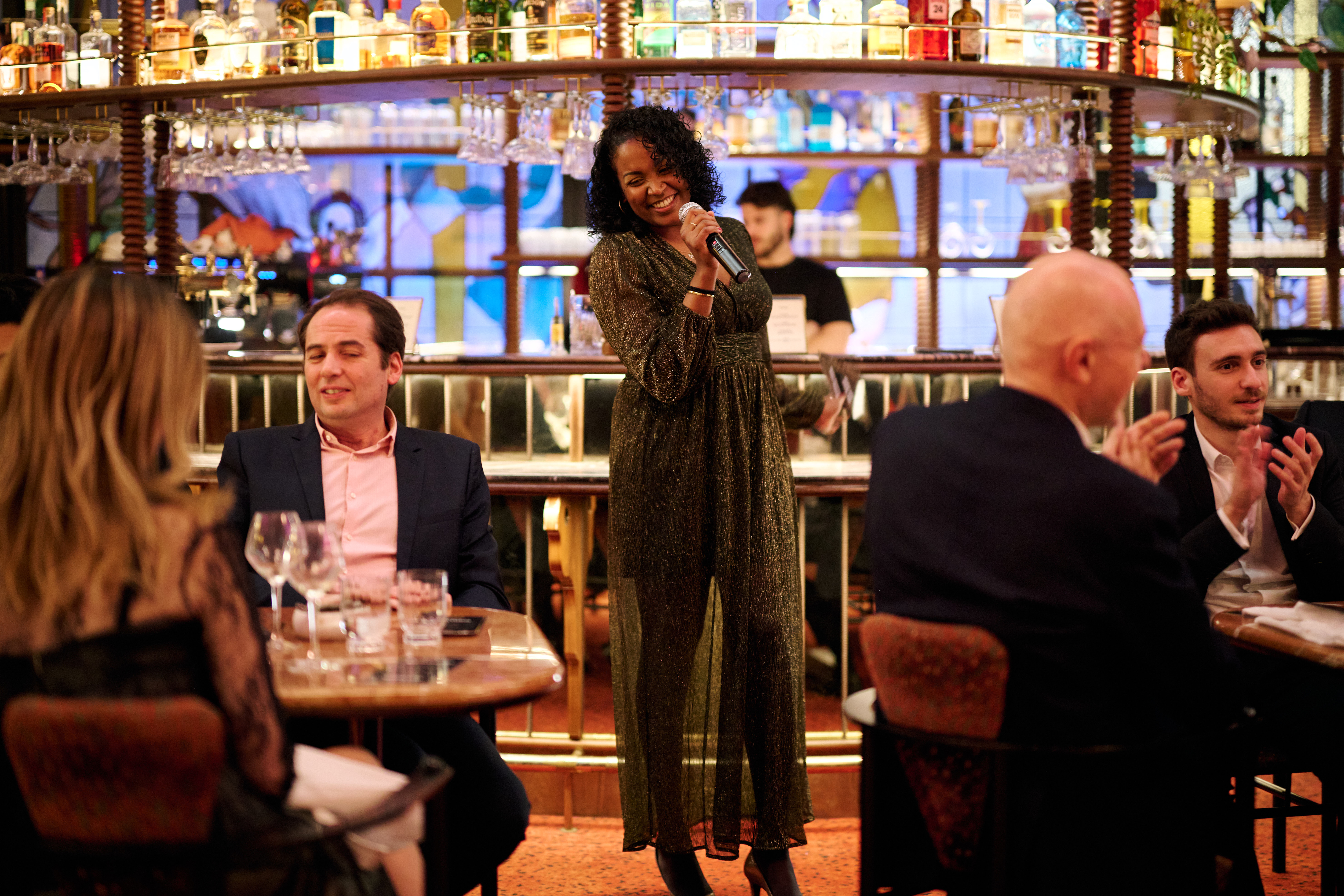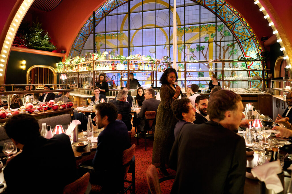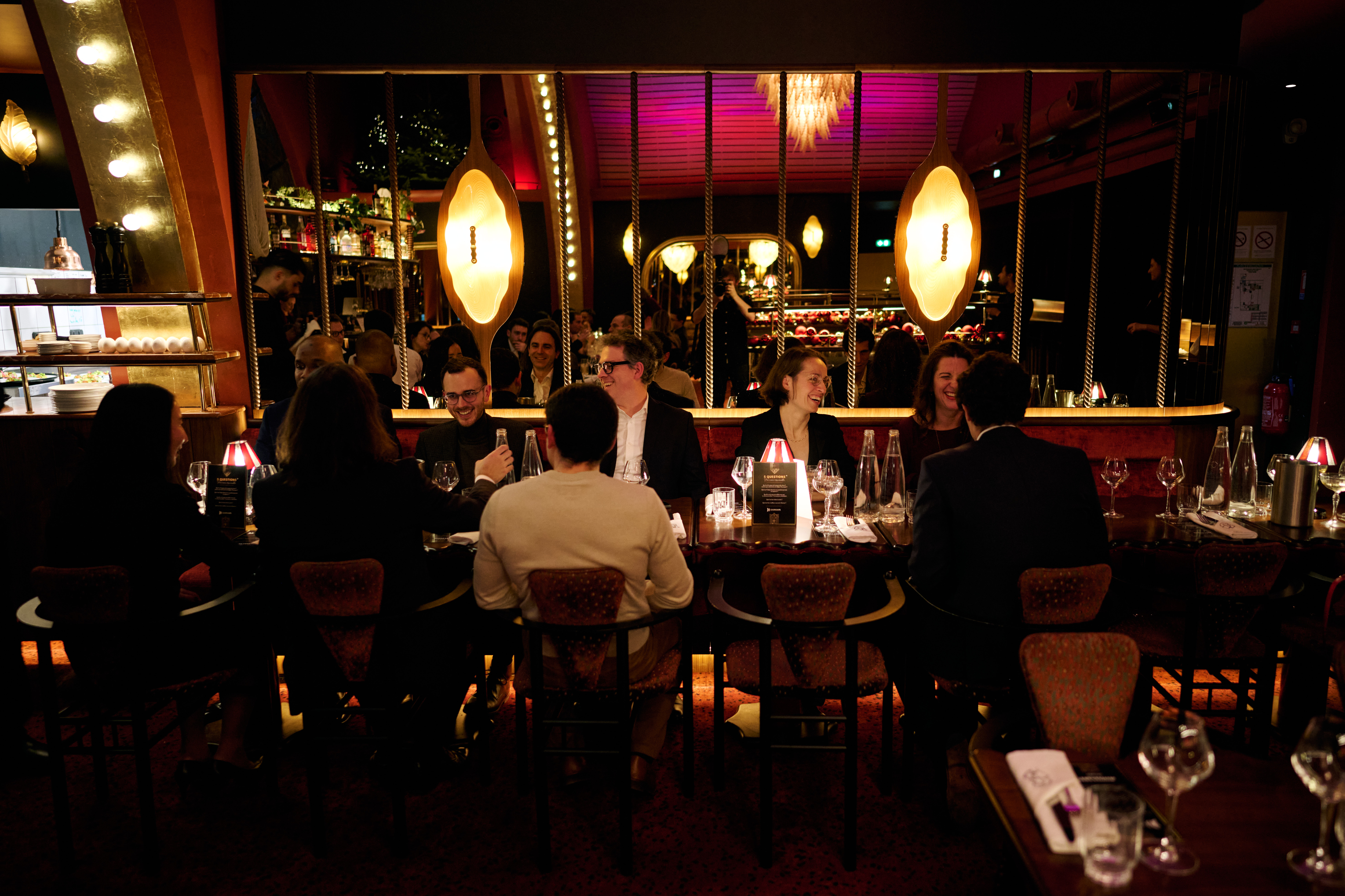 La soirée a débuté par un apéritif convivial avant un dîner assis dans ce lieu emblématique parisien, créant une atmosphère à la fois élégante et festive ponctuée de moments de spectacle.